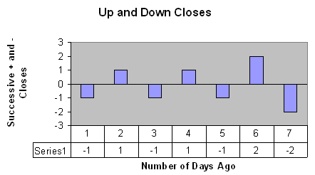 Lengthy chains of daily fluctuations like these are rare. There are only four repeats of this pattern for the S&P500 since January 2000, with a median loss of -.27 percent. While the DJIA and the NASDAQ indices had just two repeats, with median decreases of -.28 percent and -.17 percent, respectively.