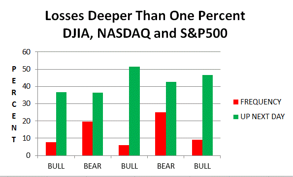 In bad times, they ranged from losses as deep as -5.3 percent to gains as high of plus 5.0 percent; while the comparable changes were -3.8 percent and plus 4.4 percent in bull markets.