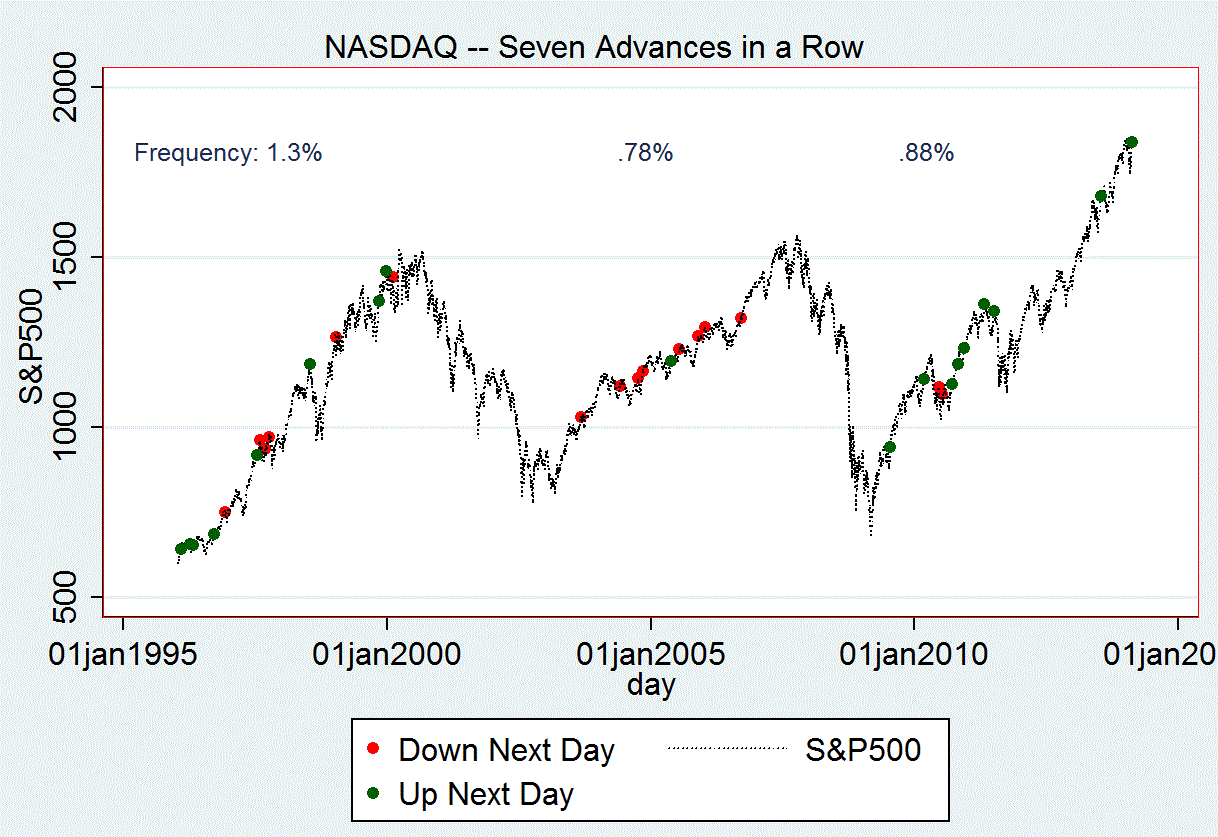 There is a favorable outlook for tomorrow: the record shows seven consecutive advances occurring just about one of every two happenings.
