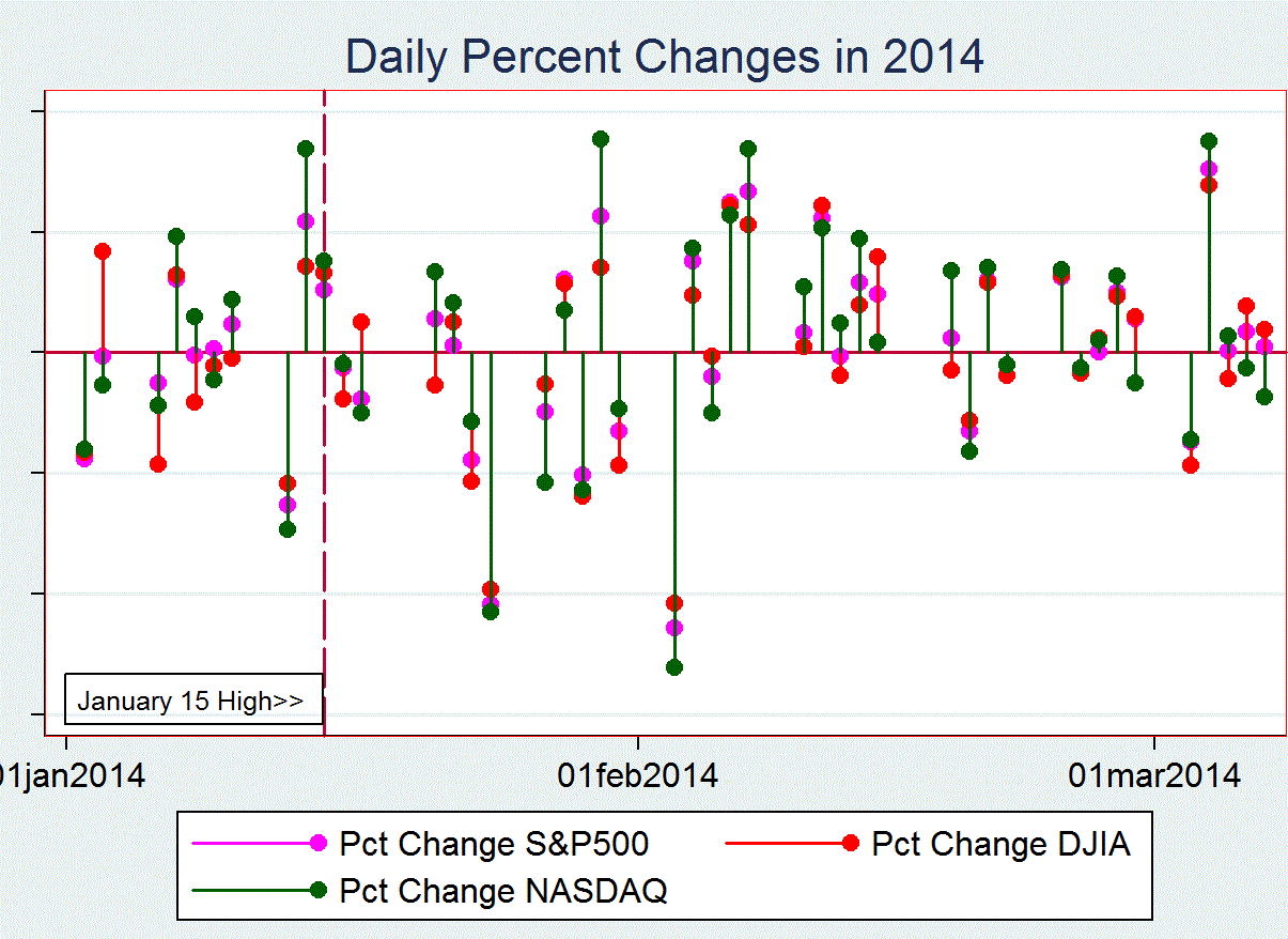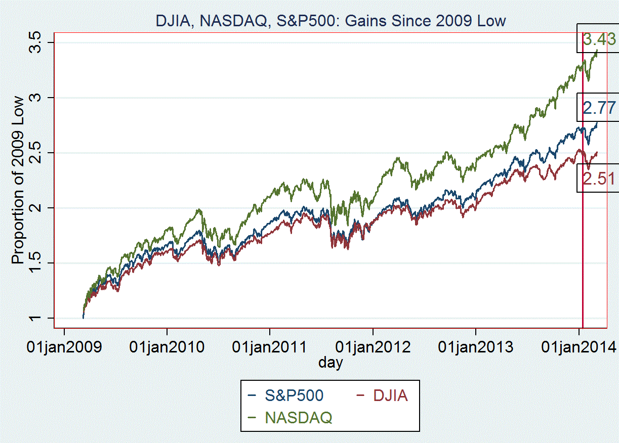 March 6, 2014 — NASDAQ Beats DJIA and S&P500