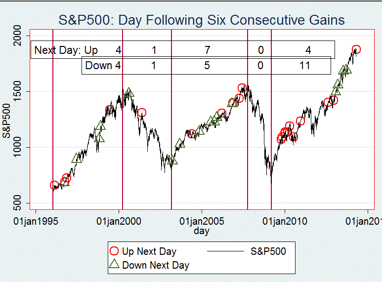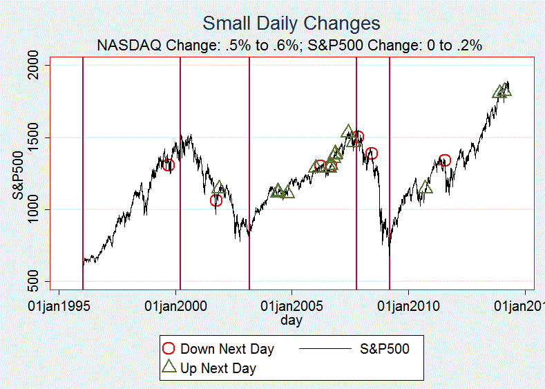 It should not be surprising that prices declined on four of the following days. Yet these losses were quite small. On the other hand, the advances on the other two days ranged from .89 percent to more than three percent.